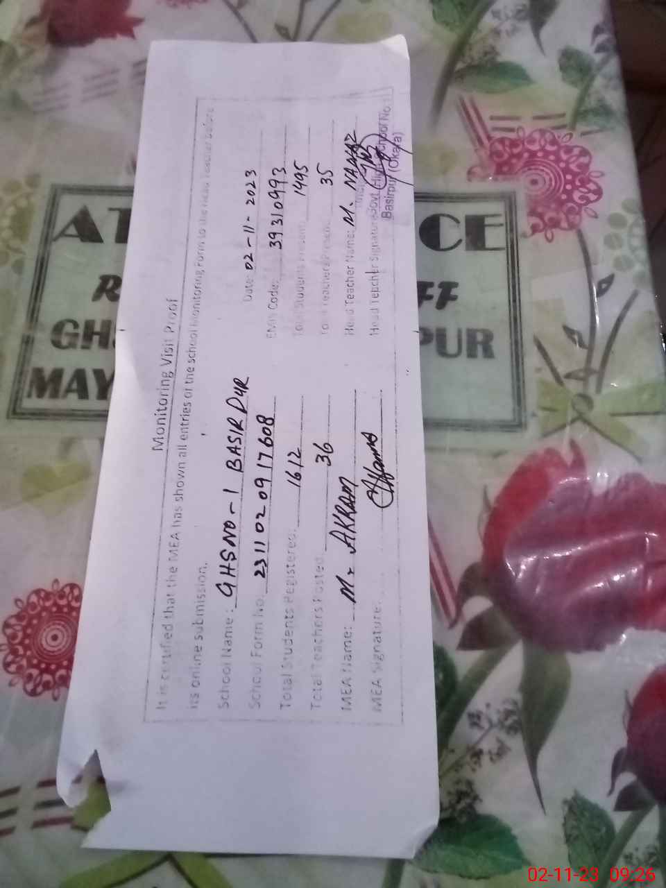 | EMIS Code: 39310993 | Name of School: GHS NO. 1 BASIR PUR MAIN ROAD | |||