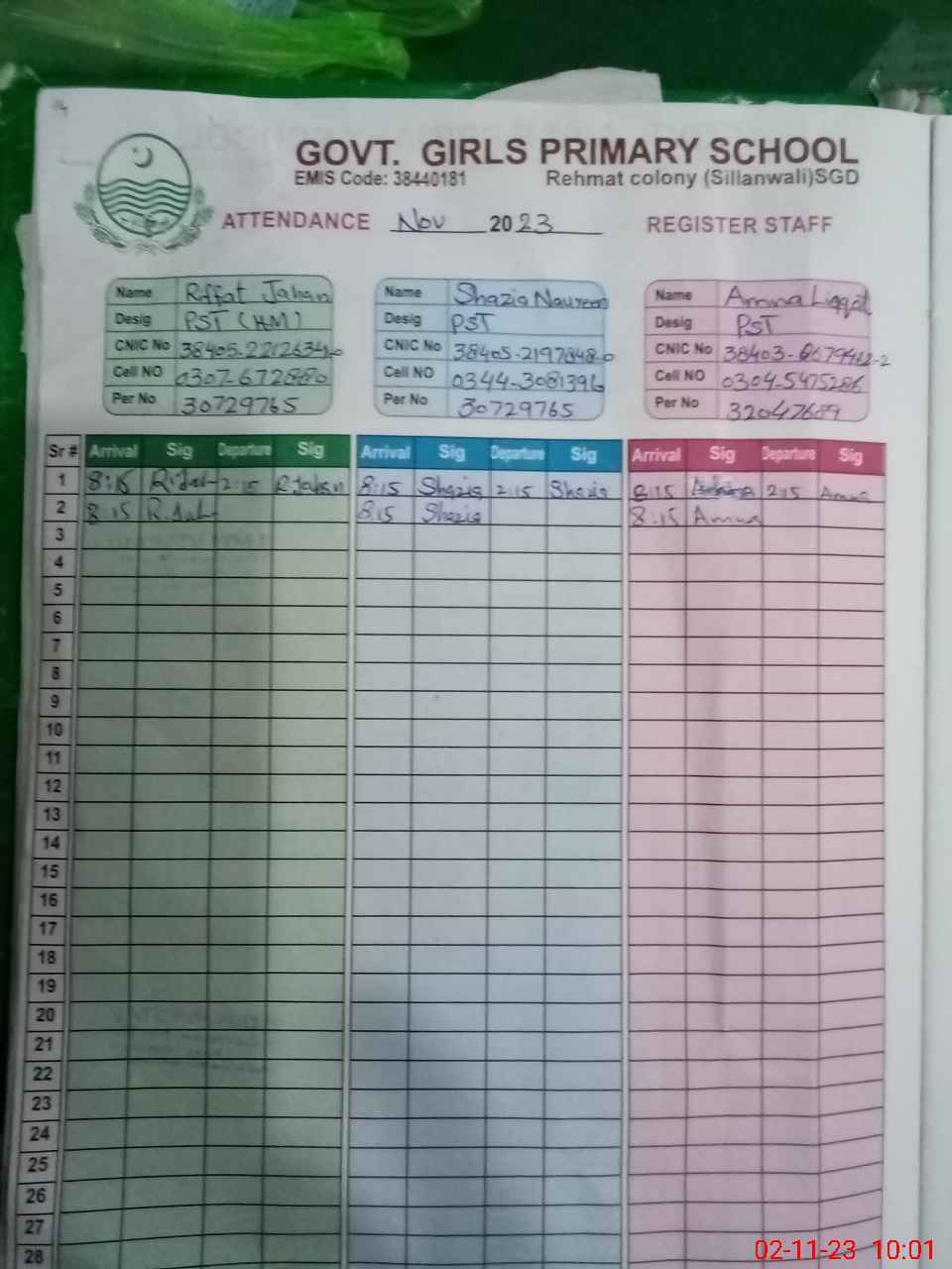 | EMIS Code: 38440181 | Name of School: GGPS RAHMAT COLONY SILLANWALI | |||