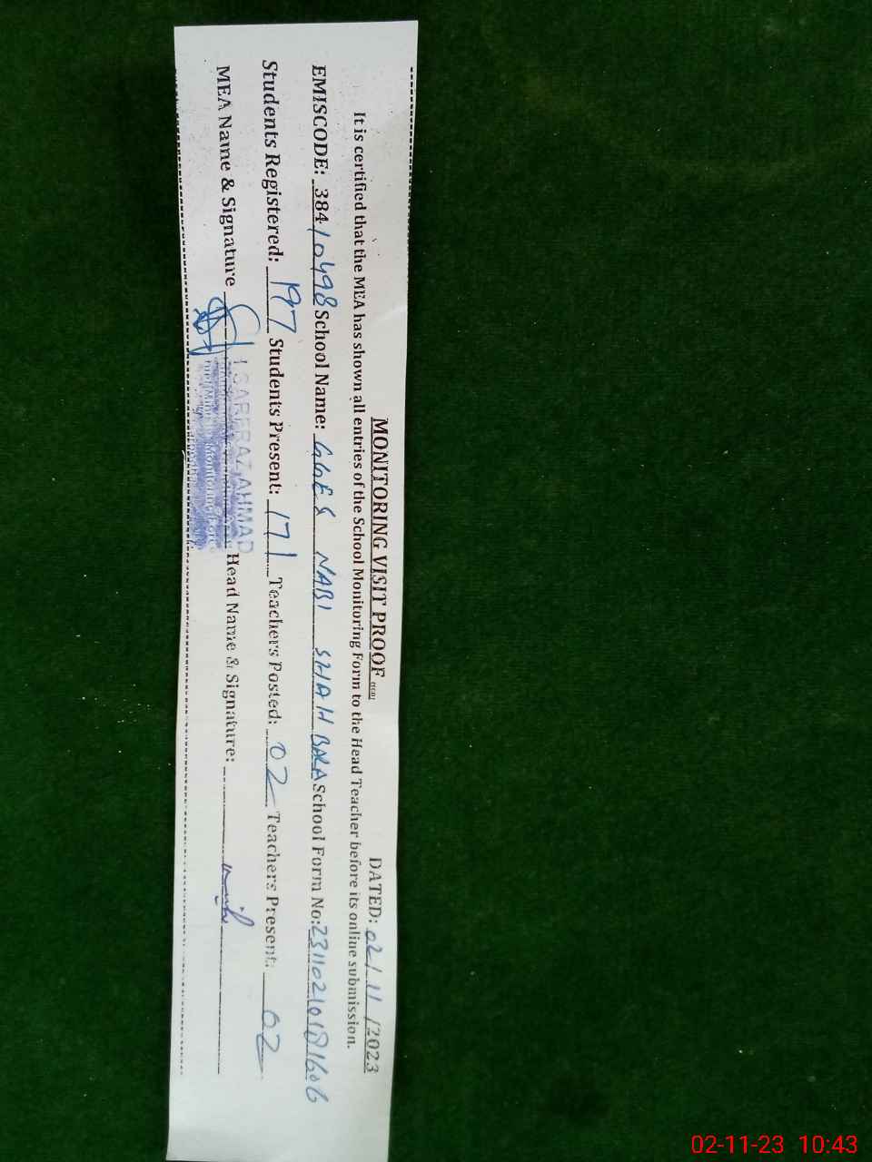 | EMIS Code: 38410498 | Name of School: GGES NABI SHAH BALA | |||
