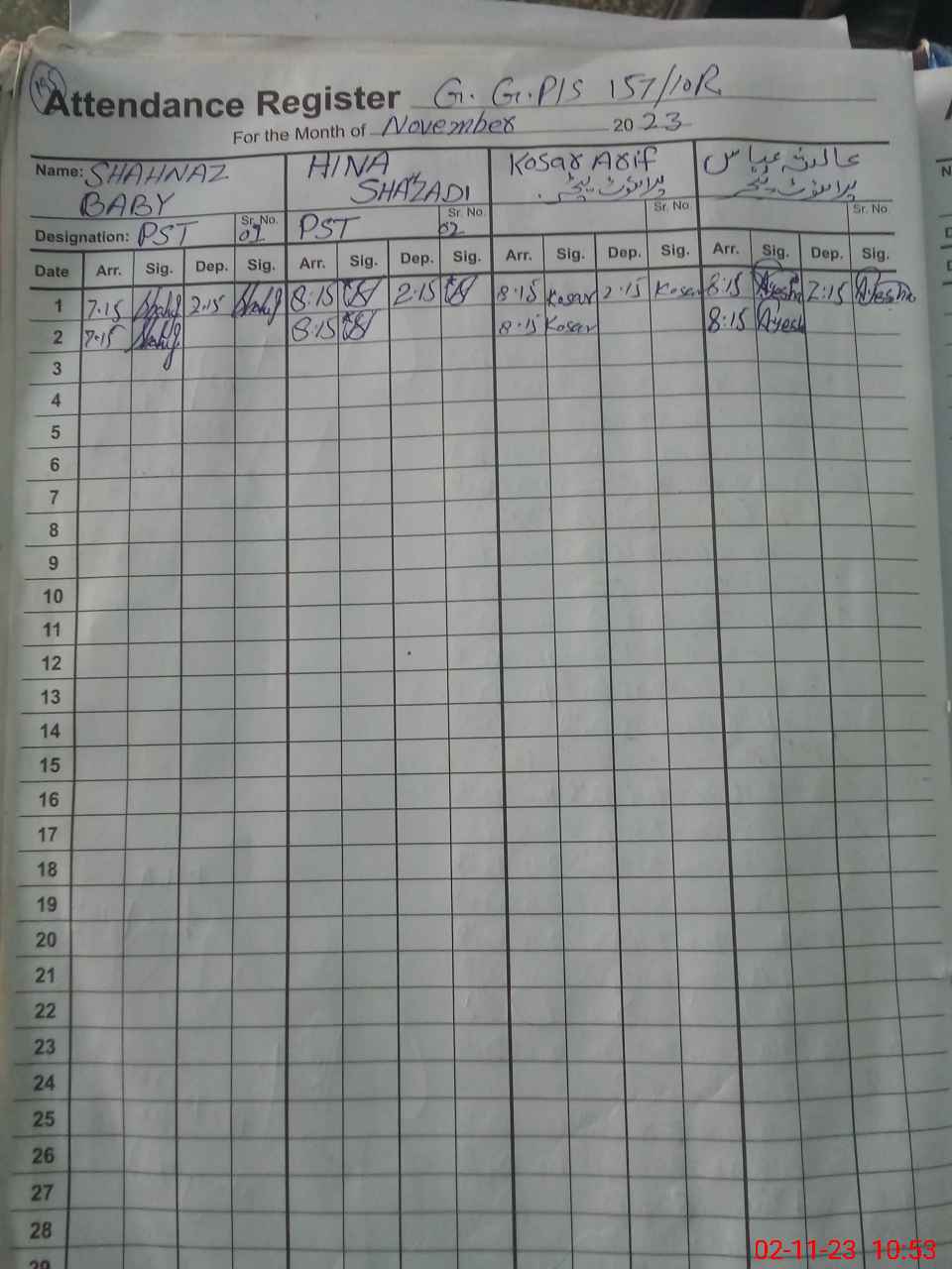 | CNIC | Full Name | Designation | R/C | Absence During Last Calender Month |