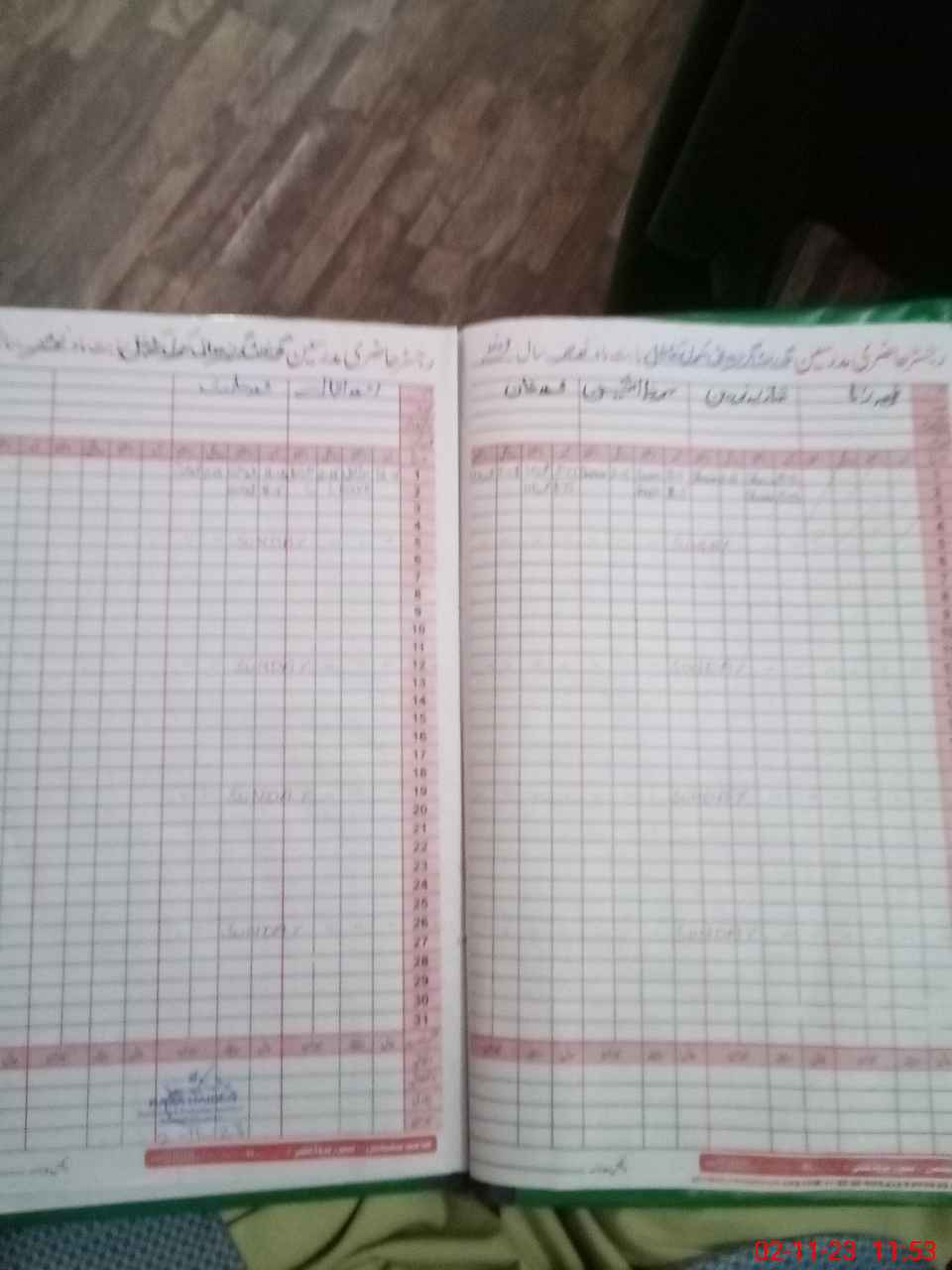 | CNIC | Full Name | Designation | R/C | Absence During Last Calender Month |