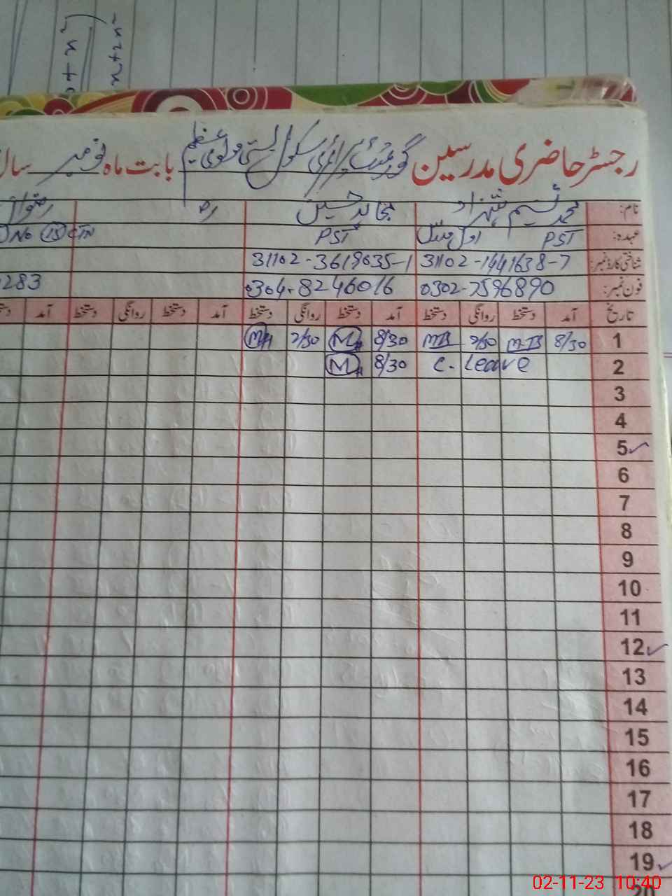 | Name: MU**** TA**** SH**** Designation: (School Headmaster's/Headmistress's) ESE Phone/Cell Number: 03**** |