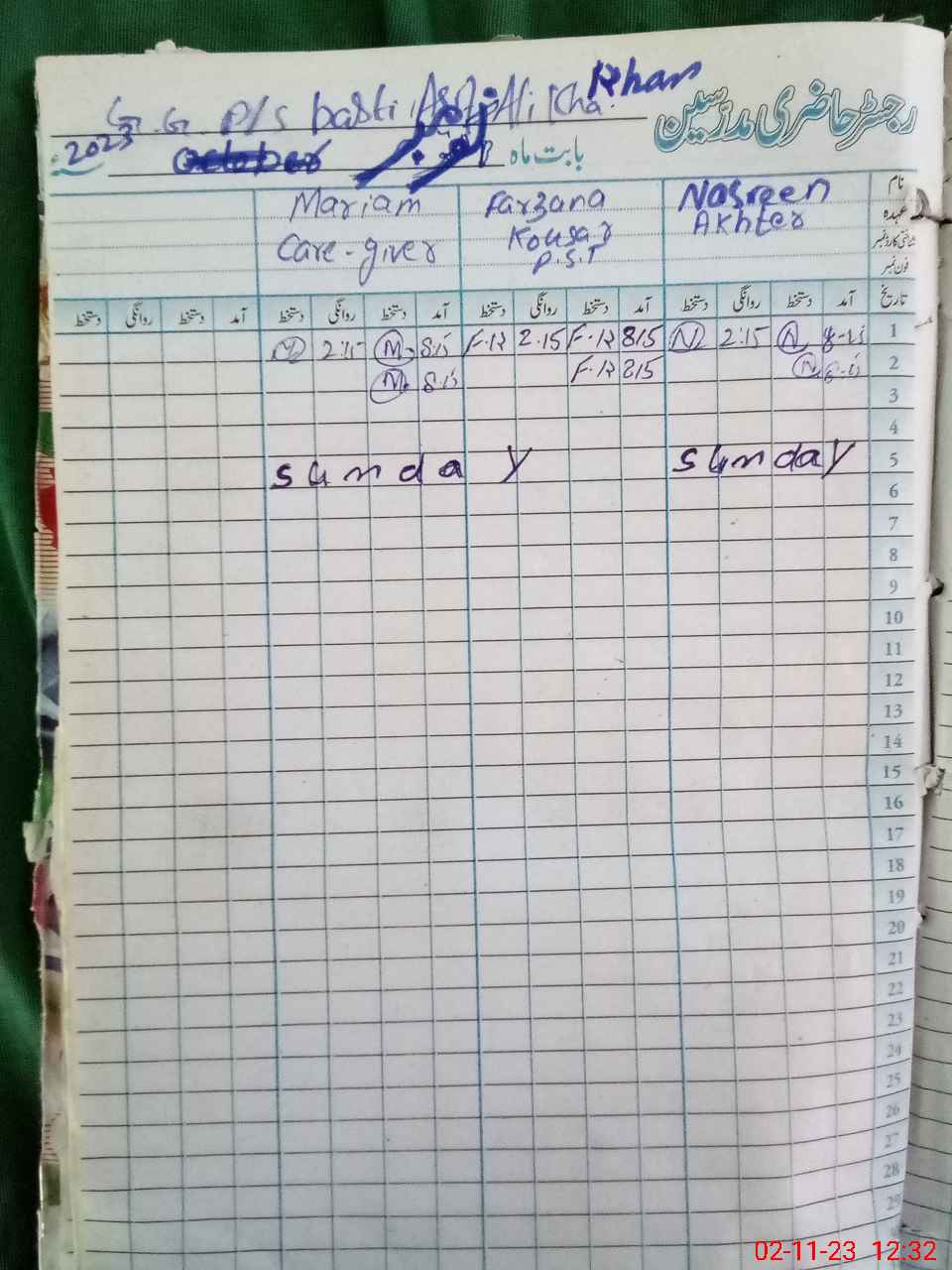 | CNIC | Full Name | Designation | R/C | Absence During Last Calender Month |