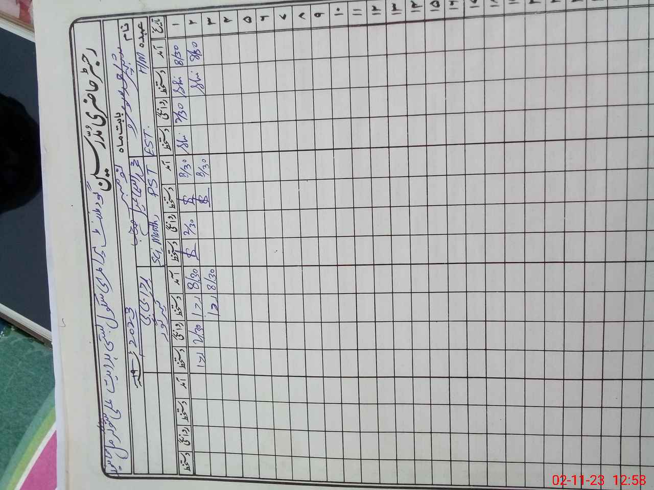 | CNIC | Full Name | Designation | R/C | Absence During Last Calender Month |