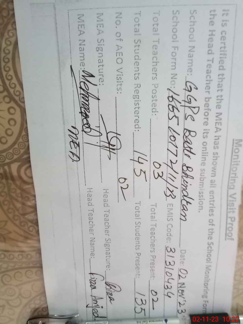 | Monitoring Date: 02-11-2023 | Start Time: 02-11-2023 09:57 AM | End Time: 02-11-2023 10:23 AM | Name of MEA: Ma**** UlHa**** | |