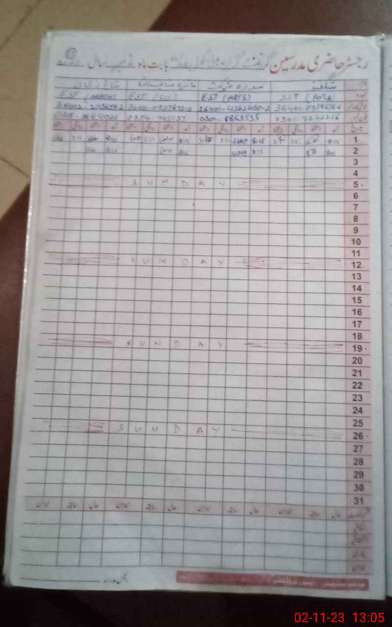 | Name: SH**** Designation: (School Headmaster's/Headmistress's) SST (GENERAL) Phone/Cell Number: 03**** |