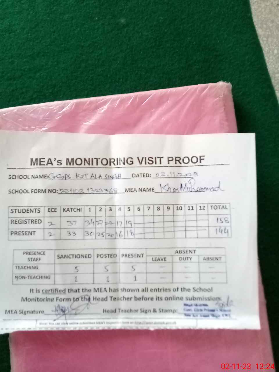 | EMIS Code: 36420351 | Name of School: GGPS KOT ALA SINGH, KHANEWAL | |||