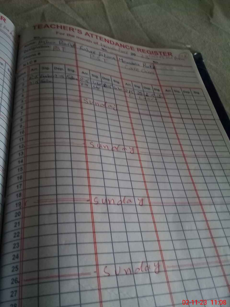 | CNIC | Full Name | Designation | R/C | Absence During Last Calender Month |