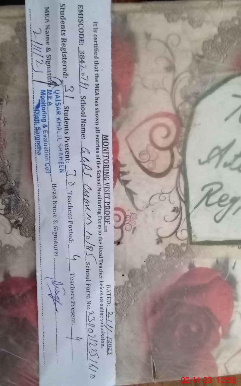| Attendance Register | Head Teacher | MEA with School | Visit Proof |