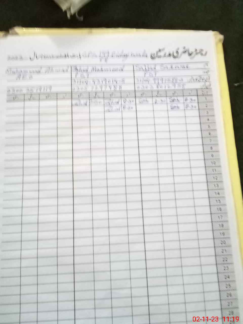 | CNIC | Full Name | Designation | R/C | Absence During Last Calender Month |