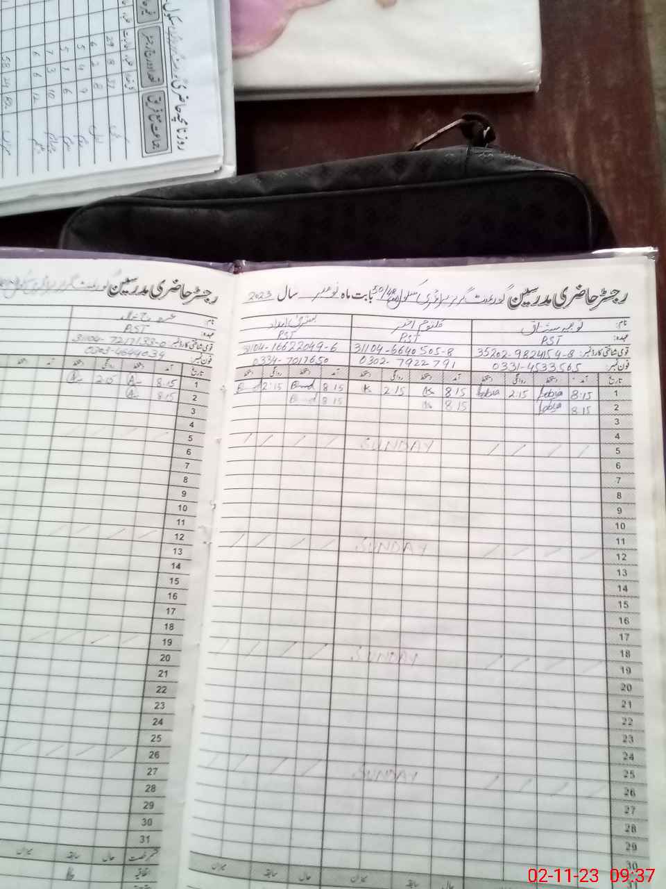 | CNIC | Full Name | Designation | R/C | Absence During Last Calender Month |