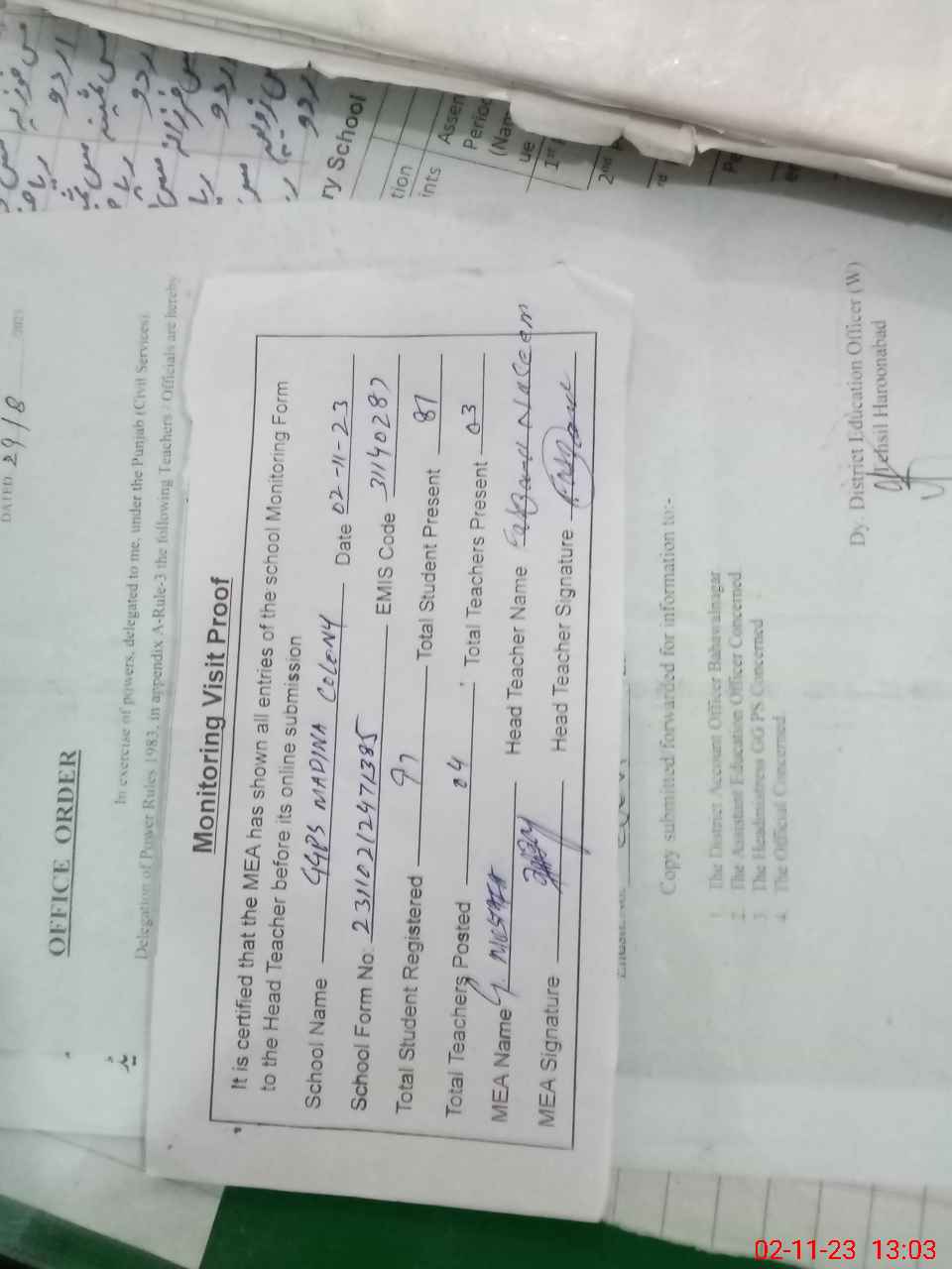 | EMIS Code: 31140287 | Name of School: GGPS MADINA COLONY | |||
