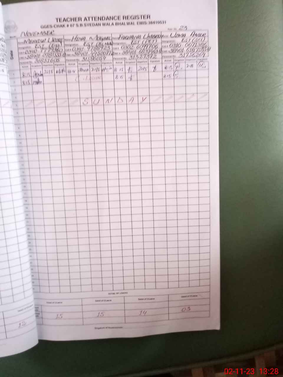 | Name: SA**** IJ**** Designation: (School Headmaster's/Headmistress's) HM Phone/Cell Number: 03**** |