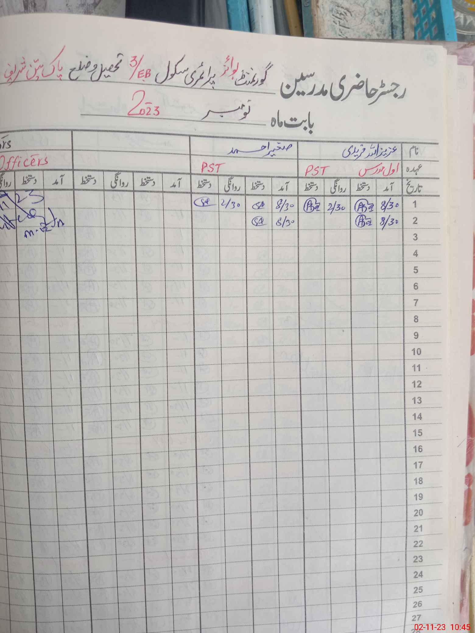 | Name: AZ**** UL**** FA**** Designation: (School Headmaster's/Headmistress's) PST Phone/Cell Number: 03**** |