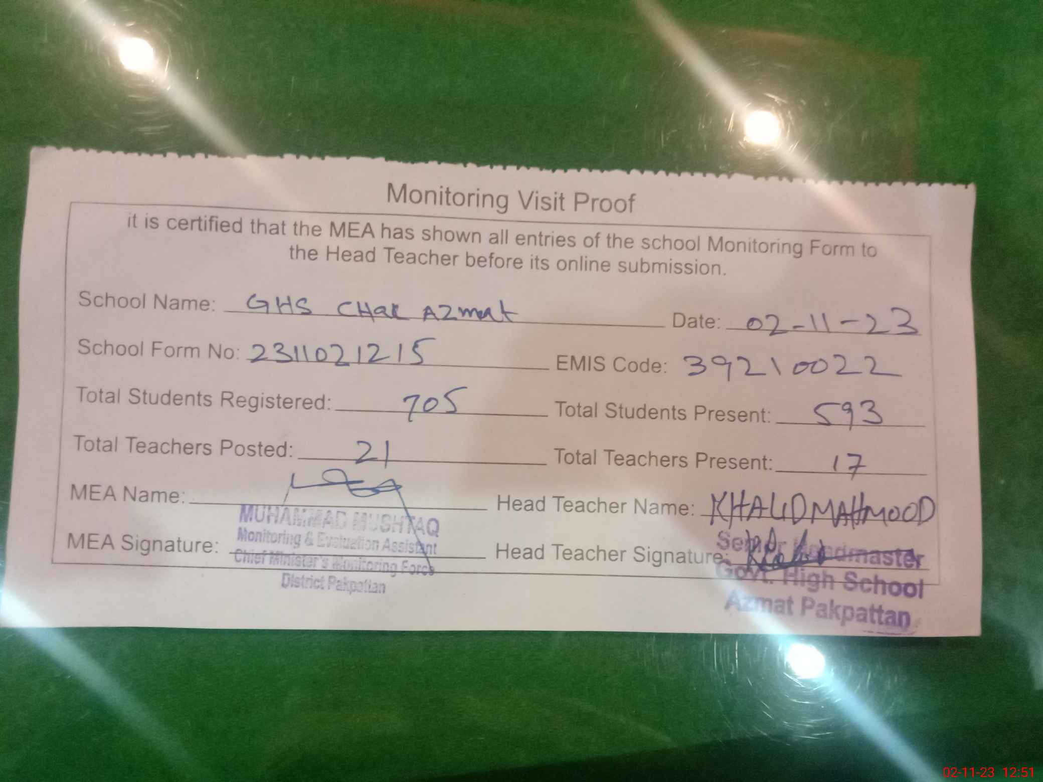 | EMIS Code: 39210022 | Name of School: GHS CHAK AZMAT | |||