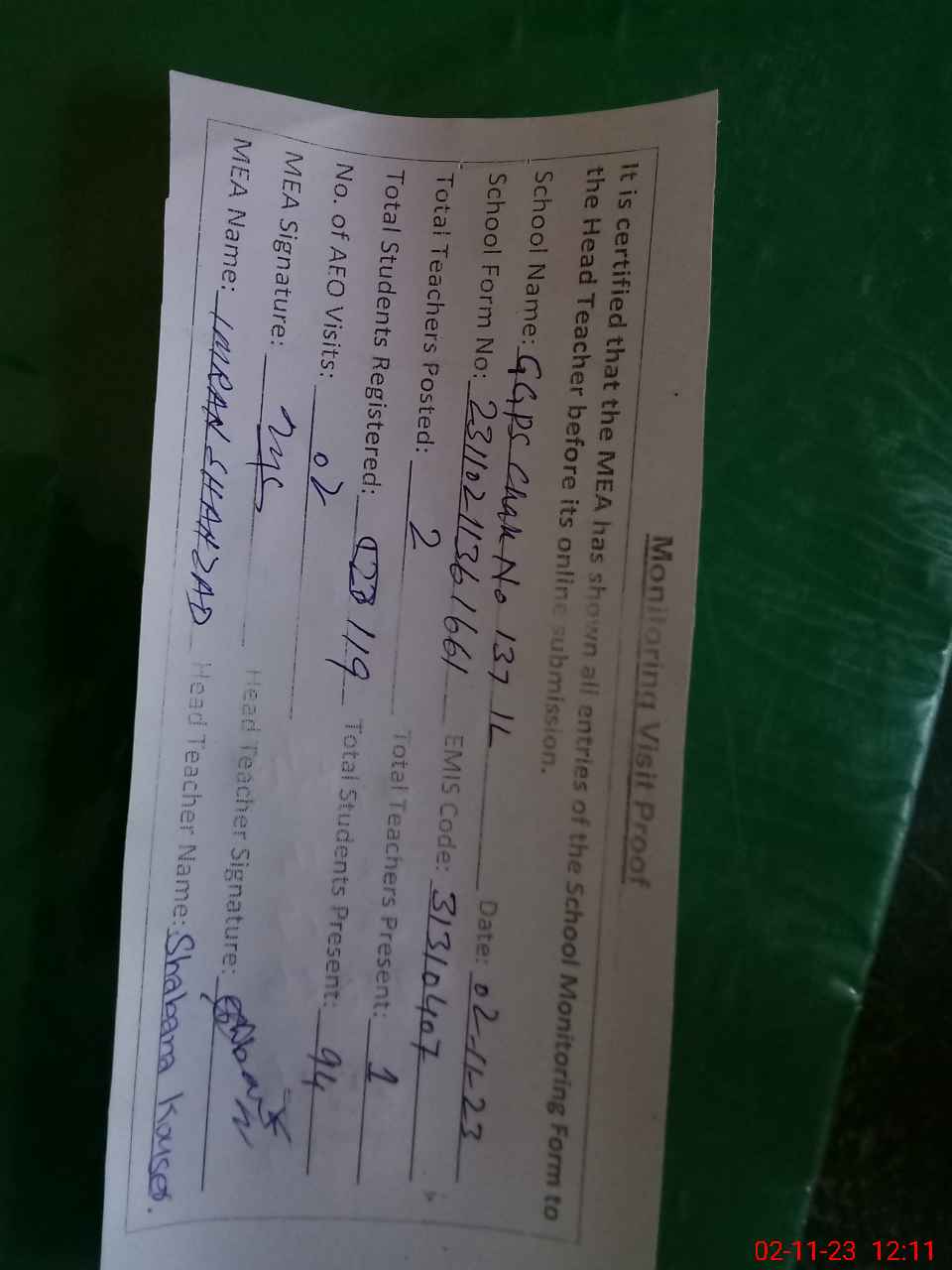 | EMIS Code: 31310407 | Name of School: GGPS CHAK NO.137/1-L | |||