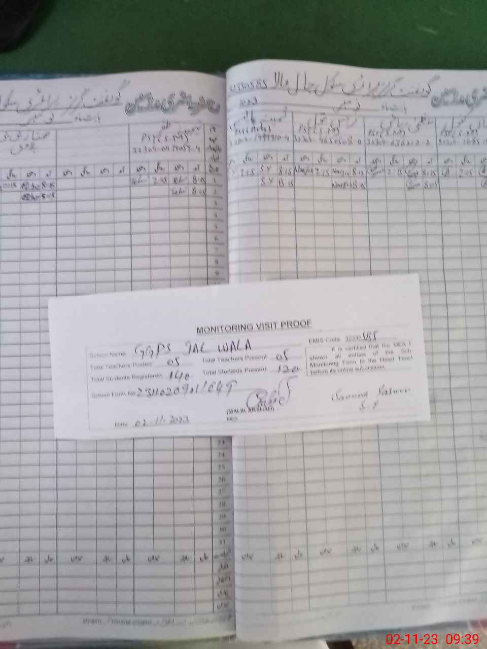 | Attendance Register | Head Teacher | MEA with School | Visit Proof |