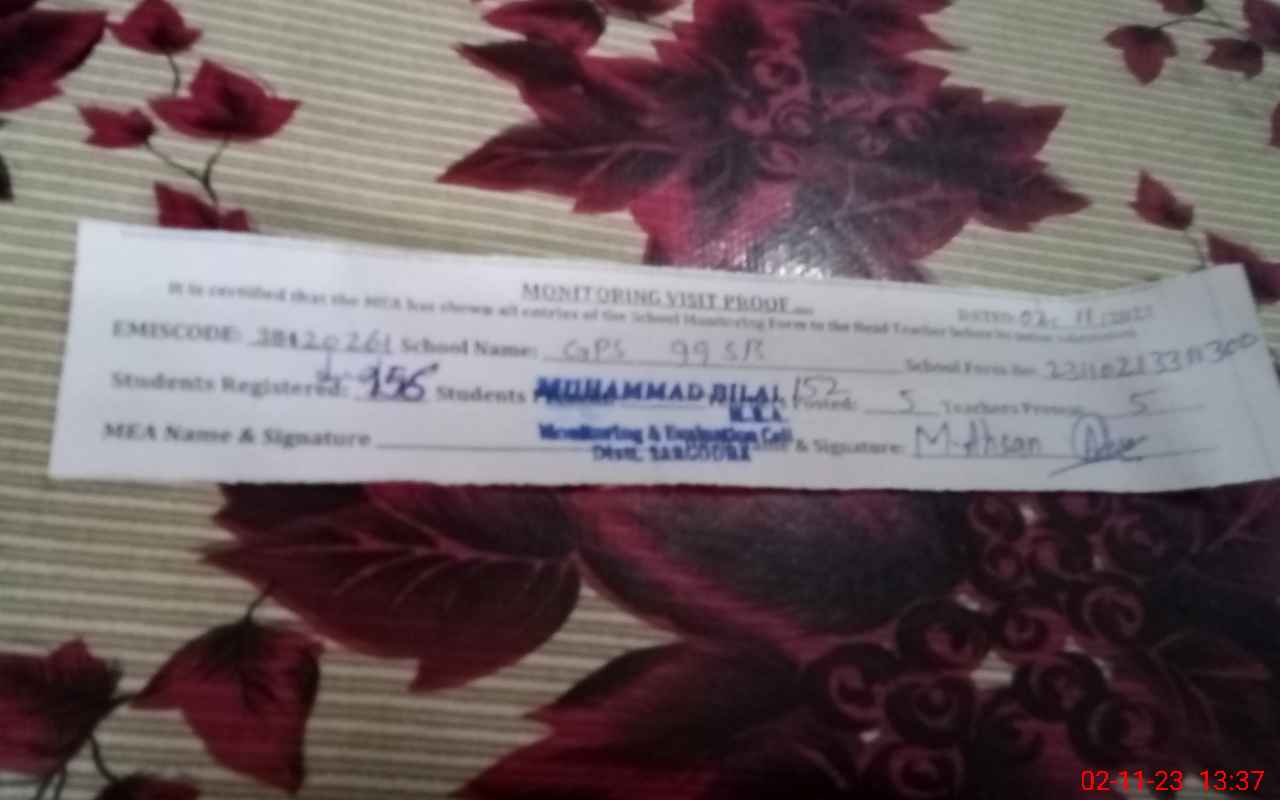 | EMIS Code: 38420261 | Name of School: GPS CHAK NO.99 SB | |||