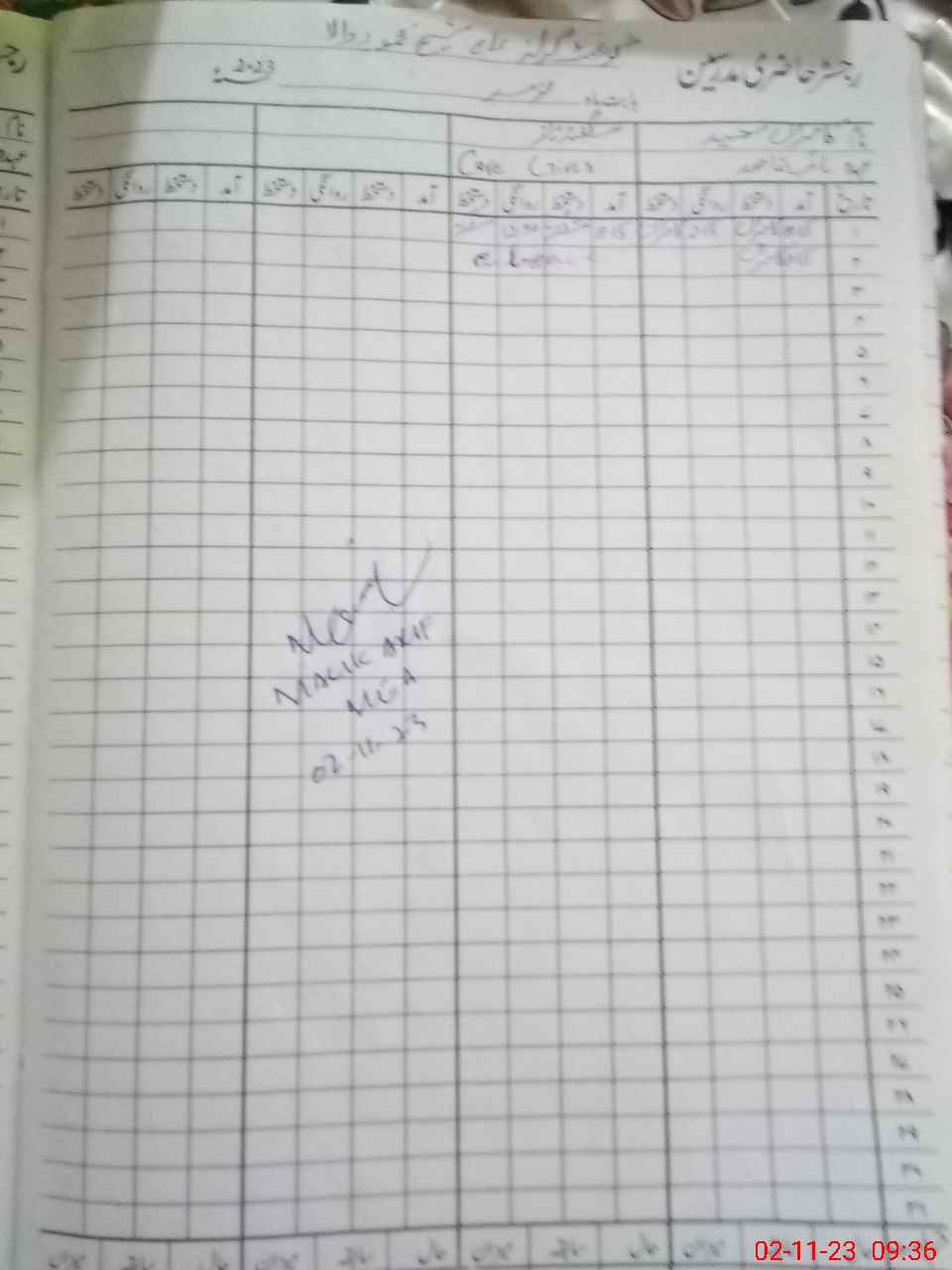 | CNIC | Full Name | Designation | R/C | Absence during last cal. month |