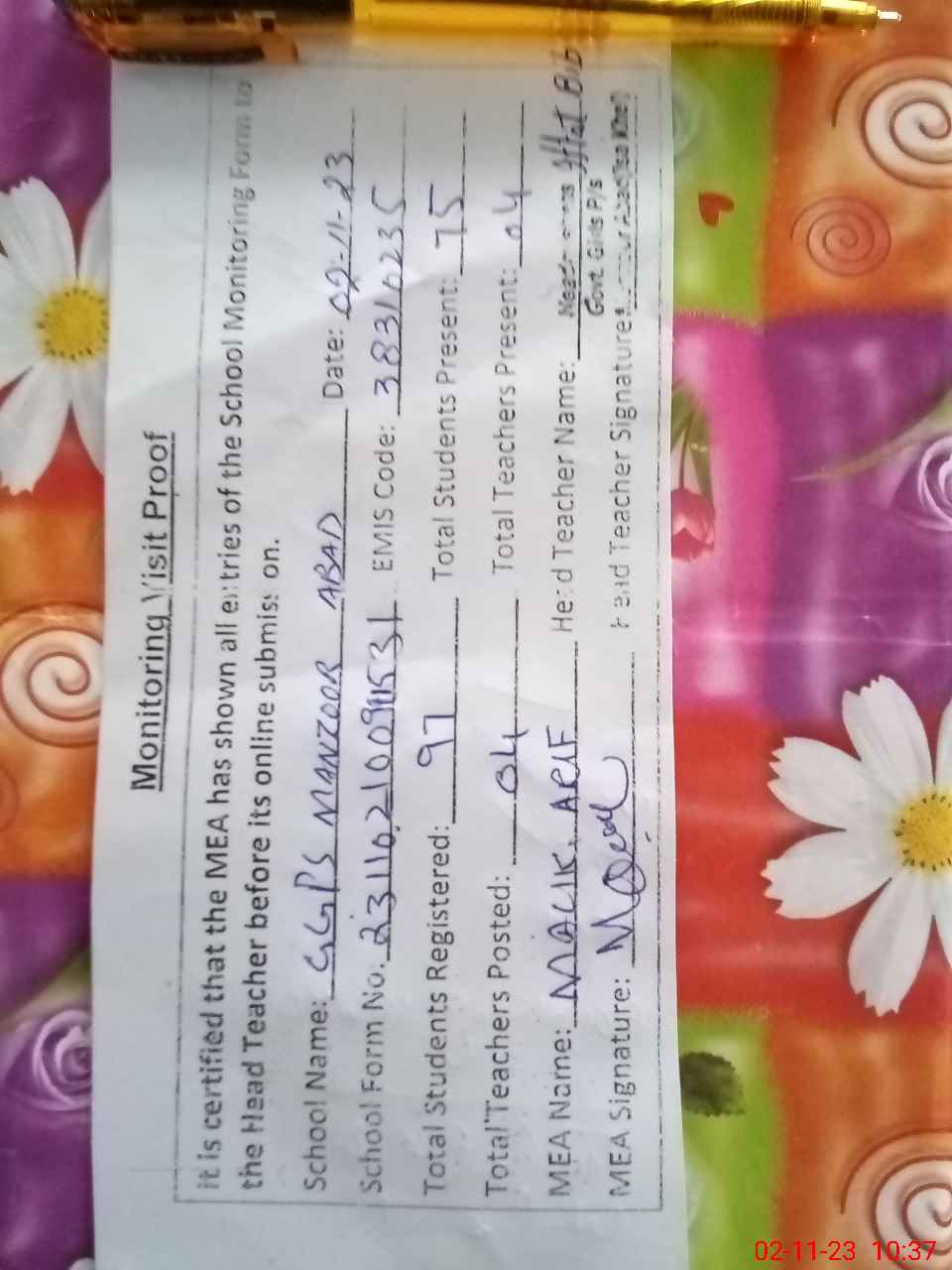 | EMIS Code: 38310235 | Name of School: GGPS MANZOOR ABAD ISA KHEL | |||