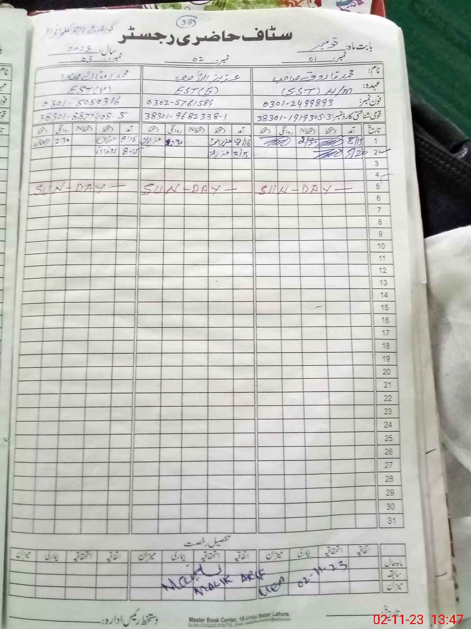 | CNIC | Full Name | Designation | R/C | Absence During Last Calender Month |