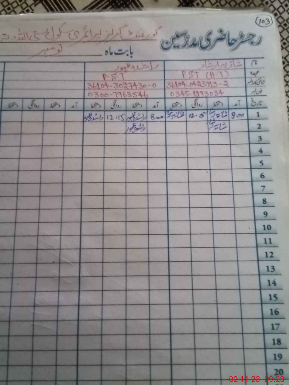 | Name: SH**** IR**** Designation: (School Headmaster's/Headmistress's) PST/PTC/JV Phone/Cell Number: 03**** |