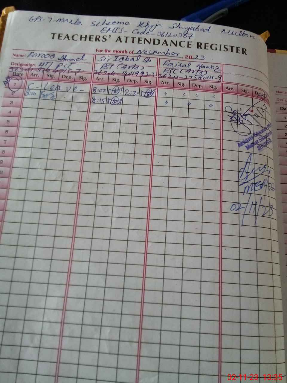 | EMIS Code: 36120367 | Name of School: GPS 7 MARLA SCHEME SHUJABAD | |||