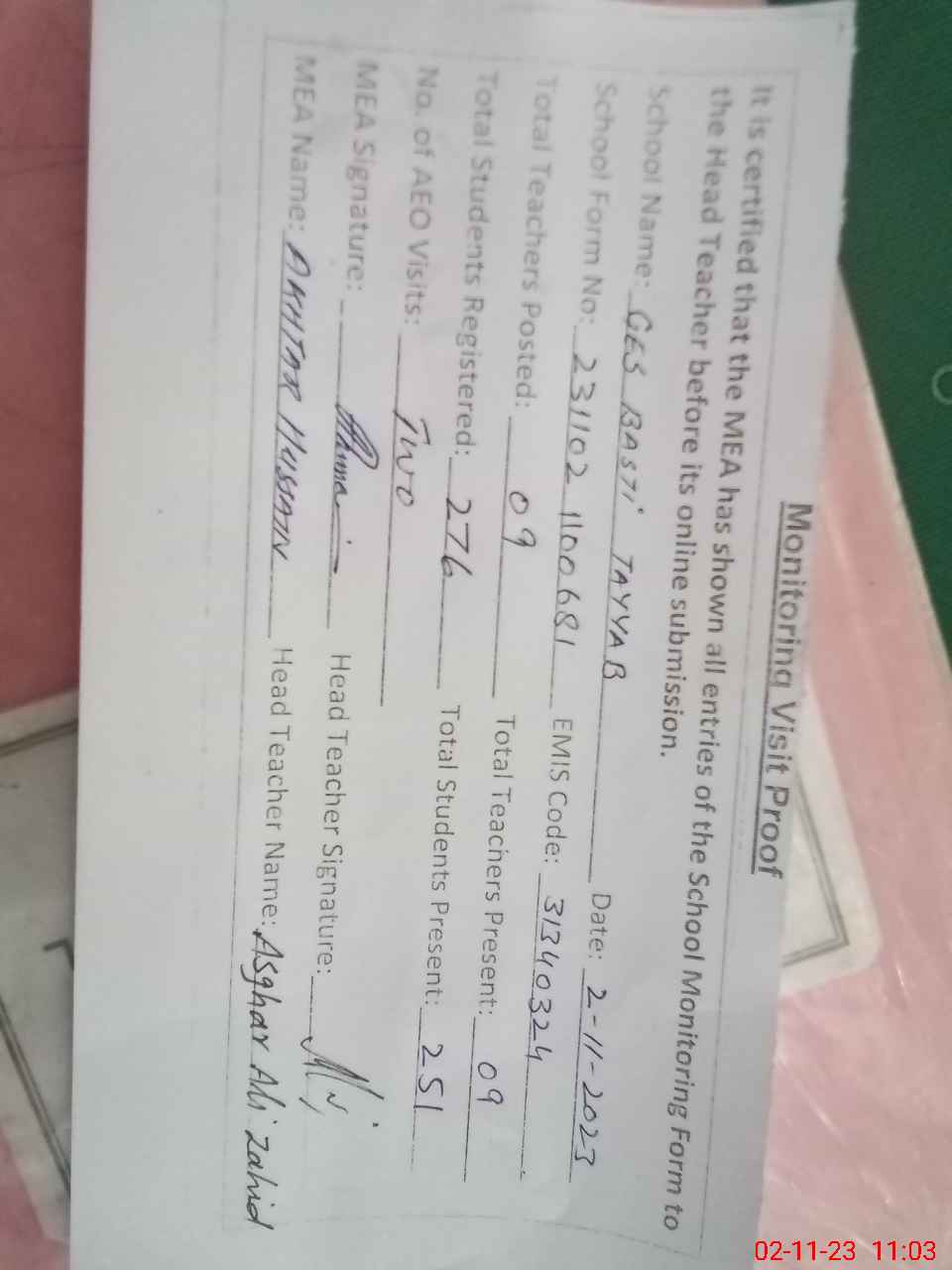 | EMIS Code: 31340324 | Name of School: GES BASTI TAYYAB | |||