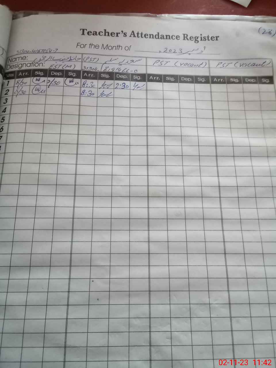 | Name: Sa**** Sa**** Designation: (School Headmaster's/Headmistress's) PST Phone/Cell Number: 03**** |