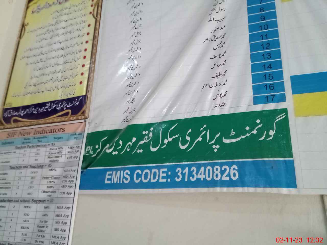 | EMIS Code: 31340826 | Name of School: GPS FAQEER MEHAR DIN | |||