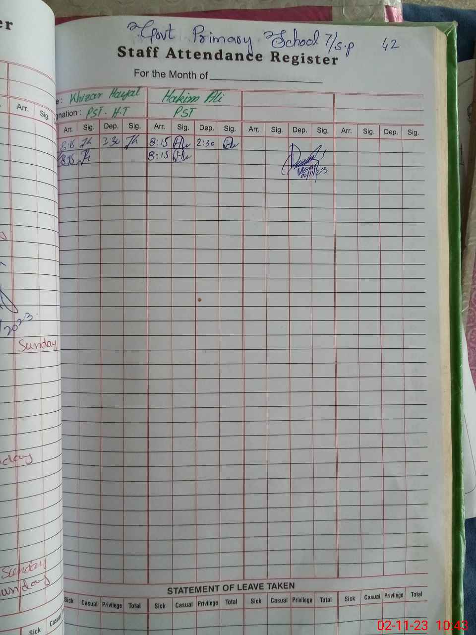 | Name: KH**** HA**** Designation: (School Headmaster's/Headmistress's) Pst (SC-MATH) Phone/Cell Number: 03**** |