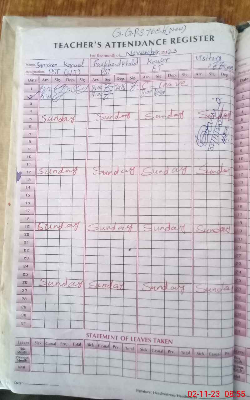 | Name: SA**** KA**** Designation: (School Headmaster's/Headmistress's) PST Phone/Cell Number: 03**** |