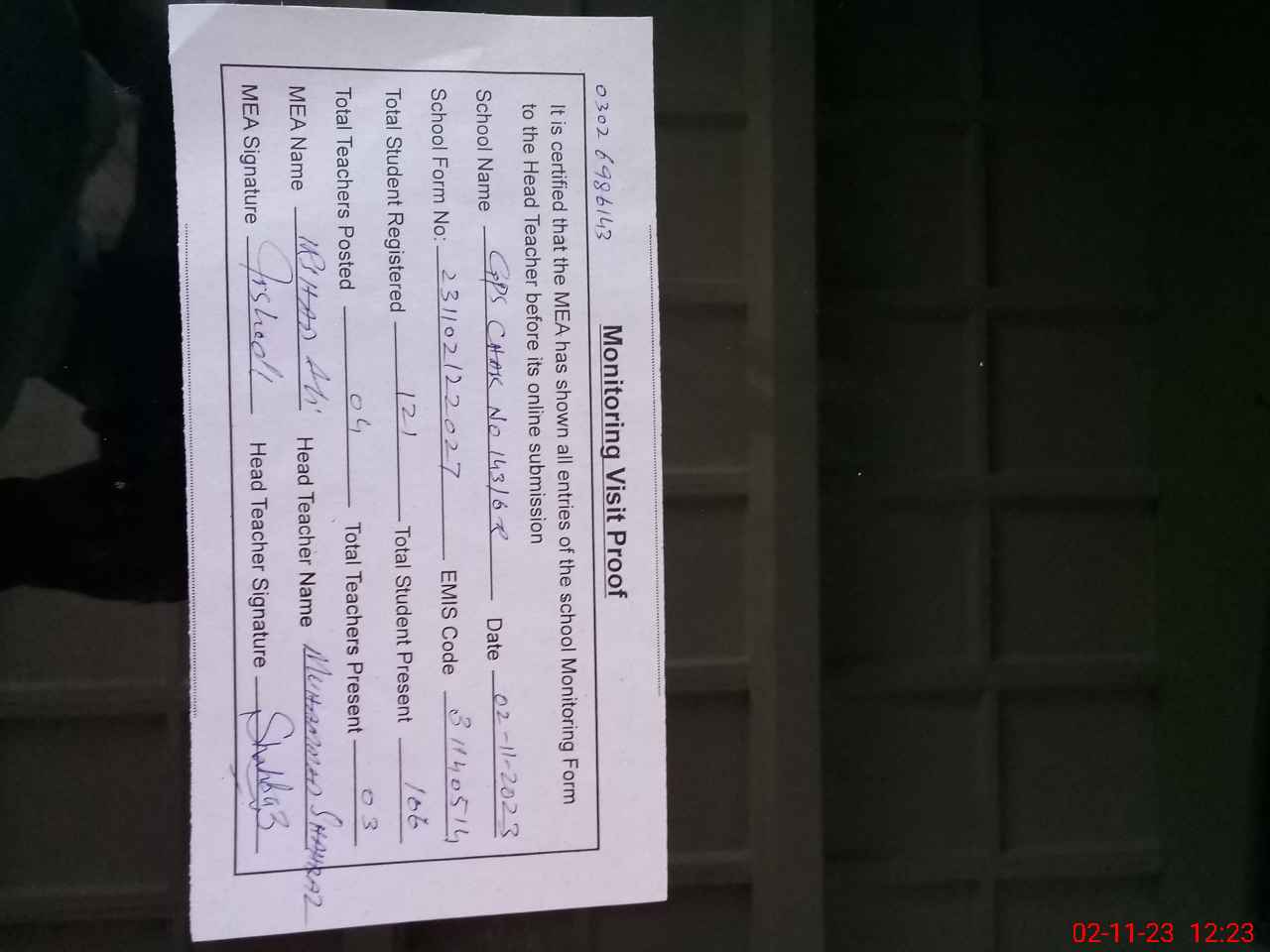 | Name: MU**** SH**** Designation: (School Headmaster's/Headmistress's) Pst Phone/Cell Number: 03**** |