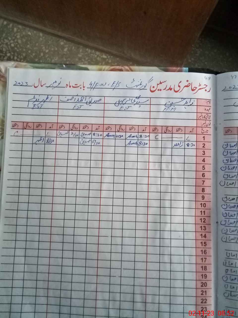 | Name: Za**** Hu**** Designation: (School Headmaster's/Headmistress's) Sst Phone/Cell Number: 03**** |