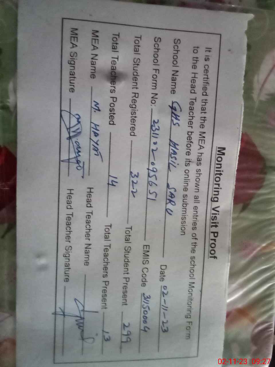 | EMIS Code: 31150004 | Name of School: GHS HASIL SARU | |||