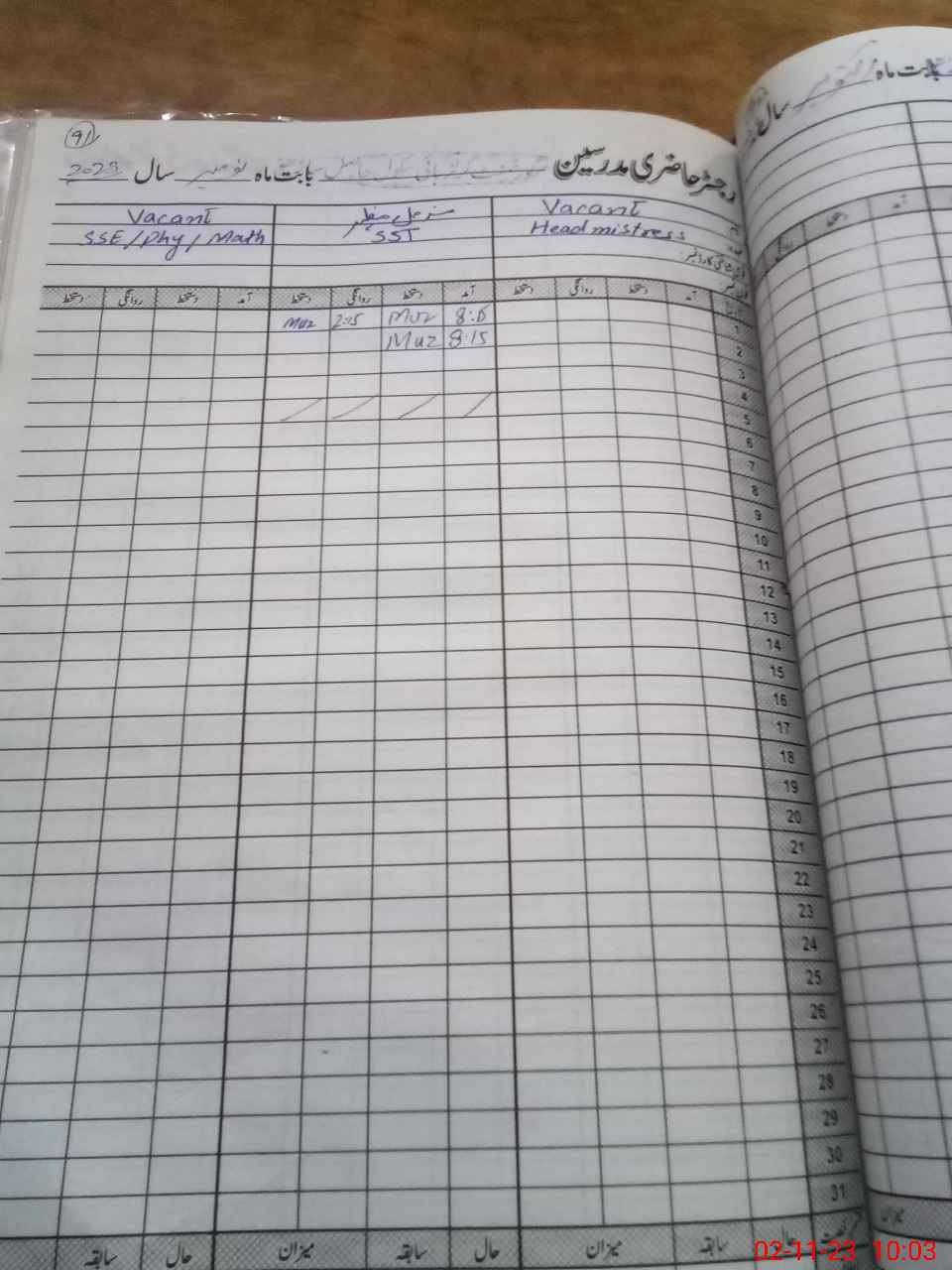 | Name: MU**** MA**** Designation: (School Headmaster's/Headmistress's) SST Phone/Cell Number: 03**** |