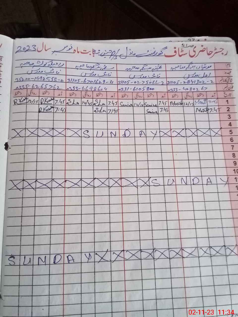 | CNIC | Full Name | Designation | R/C | Absence During Last Calender Month |