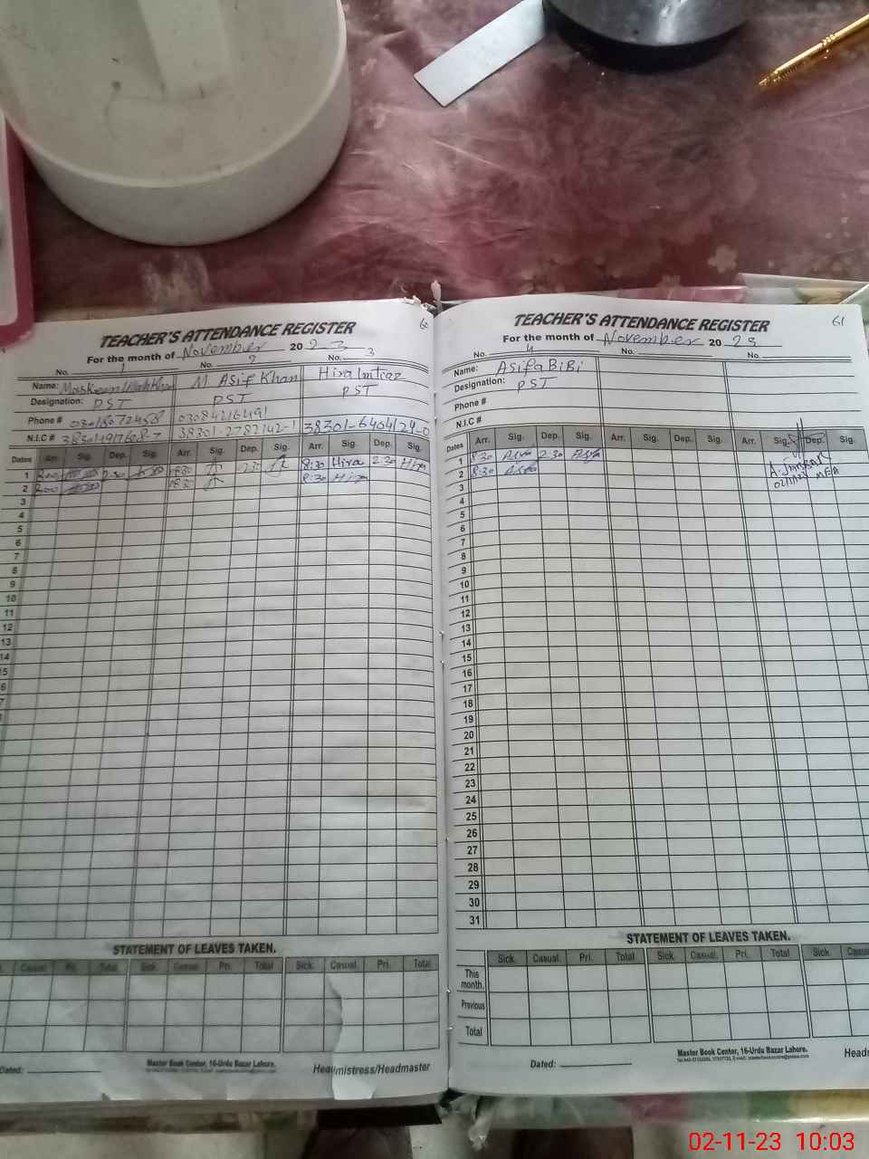 | Name: Ma**** Ul**** Kh**** Designation: (School Headmaster's/Headmistress's) PST/PTC/JV Phone/Cell Number: 03**** |