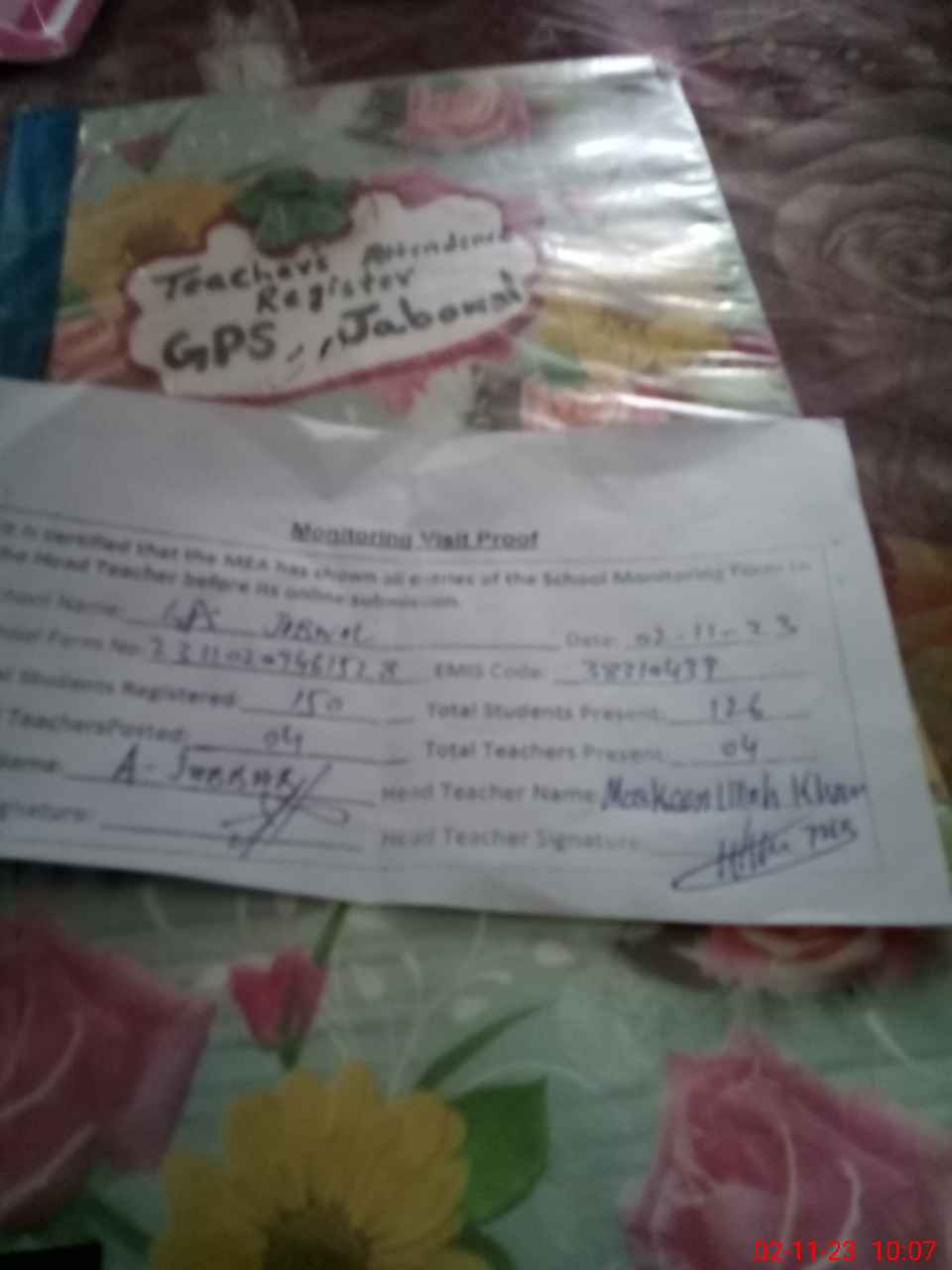 | Attendance Register | Head Teacher | MEA with School | Visit Proof |