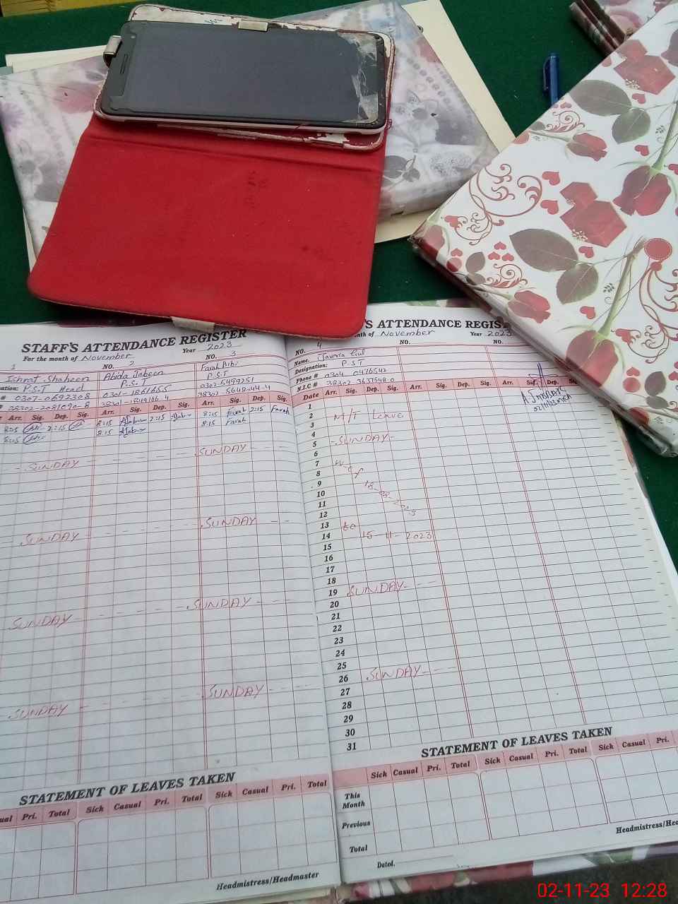 | CNIC | Full Name | Designation | R/C | Absence During Last Calender Month |