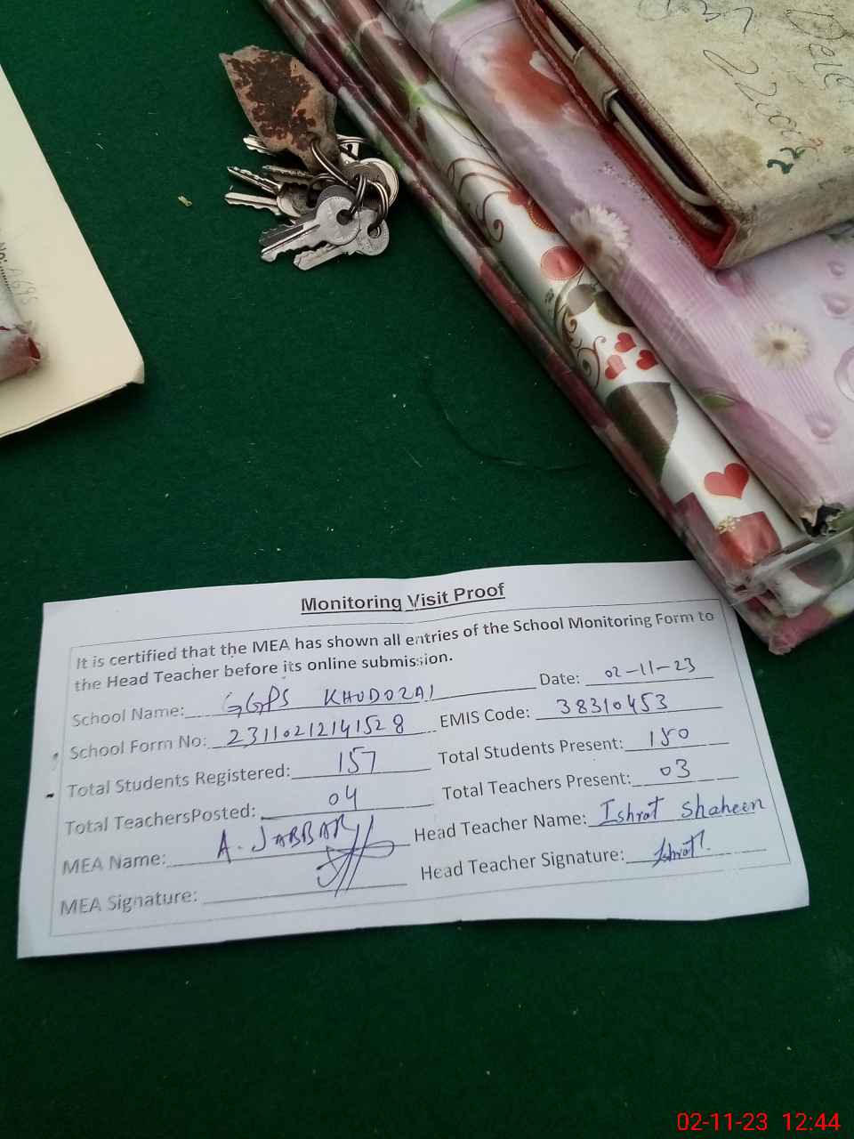 | Attendance Register | Head Teacher | MEA with School | Visit Proof |