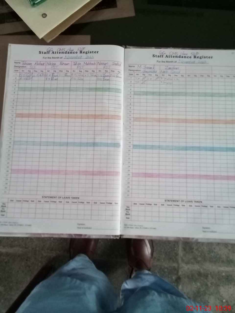 | CNIC | Full Name | Designation | R/C | Absence During Last Calender Month |