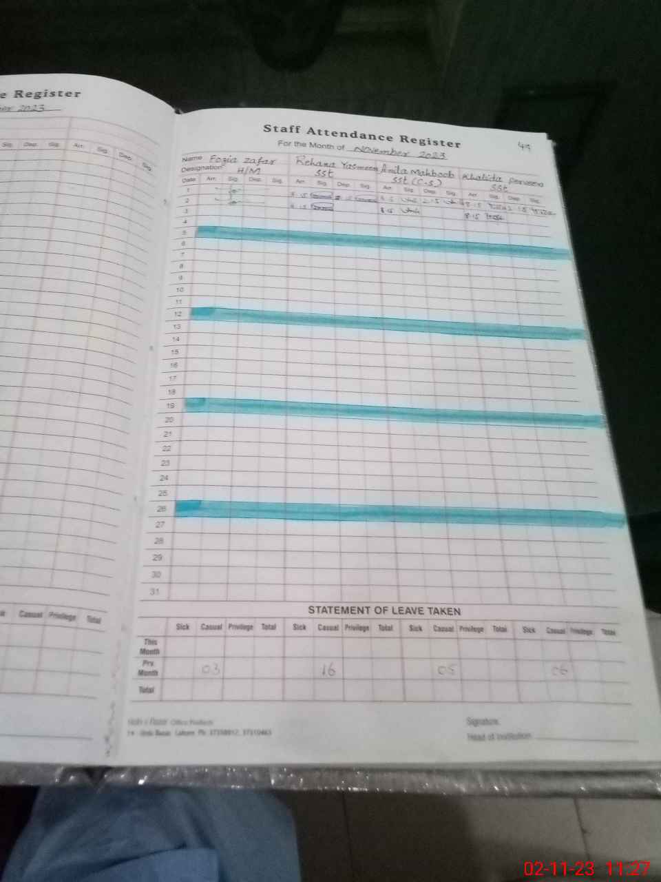 | Name: Fa**** Za**** Designation: (School Headmaster's/Headmistress's) Head Mistress Phone/Cell Number: 03**** |