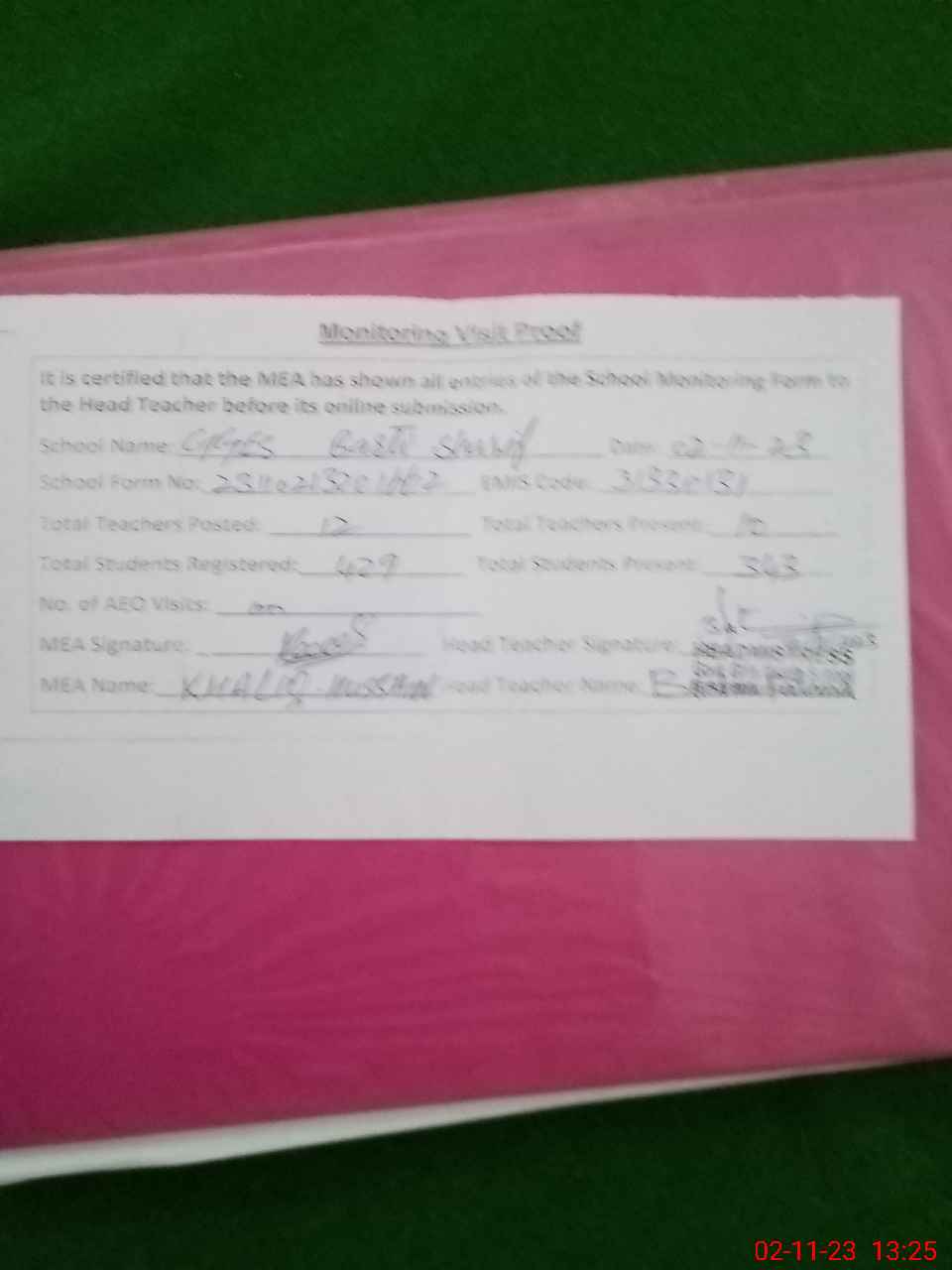 | EMIS Code: 31330131 | Name of School: GGES BASTI SHARIF | |||