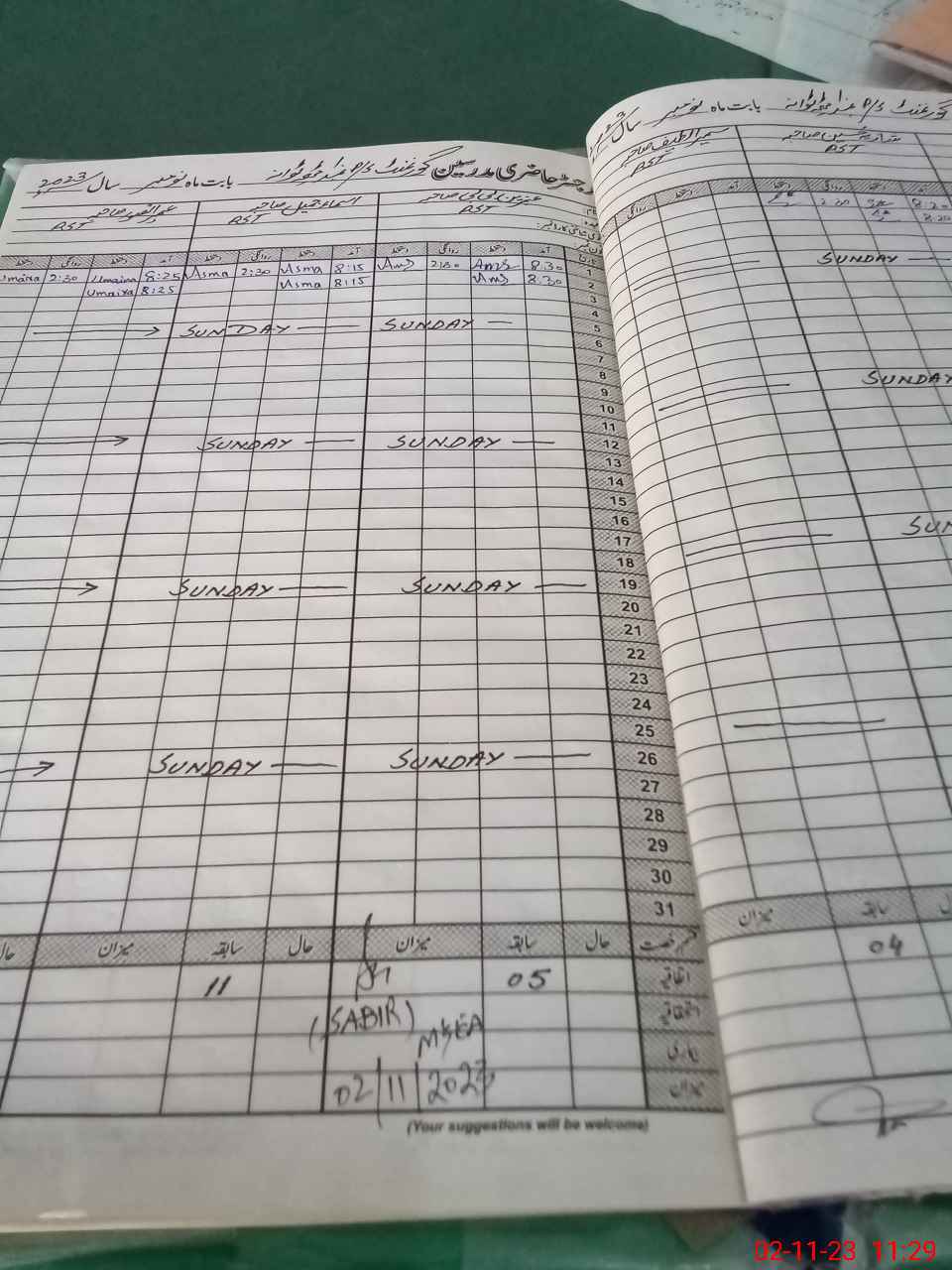 | Monitoring Date: 02-11-2023 | Start Time: 02-11-2023 11:10 AM | End Time: 02-11-2023 11:33 AM | Name of MEA: SA**** HU**** | |