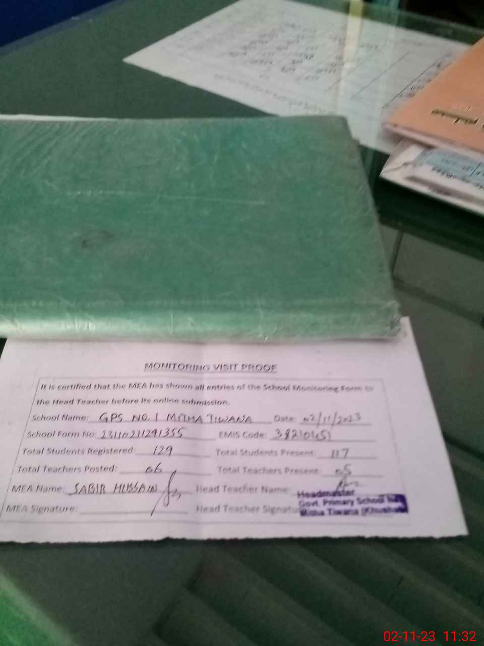 | Attendance Register | Head Teacher | MEA with School | Visit Proof |