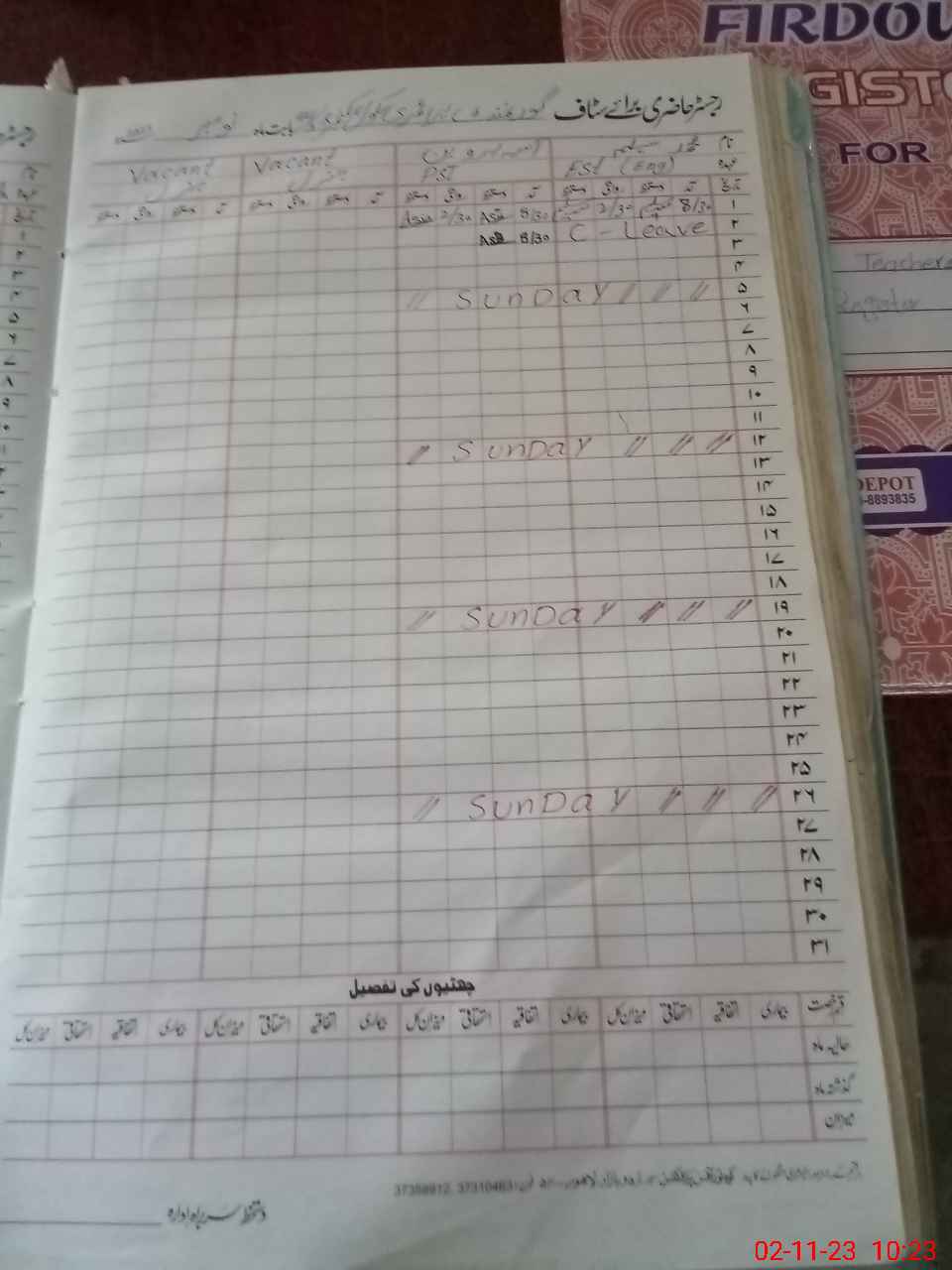 | CNIC | Full Name | Designation | R/C | Absence During Last Calender Month |