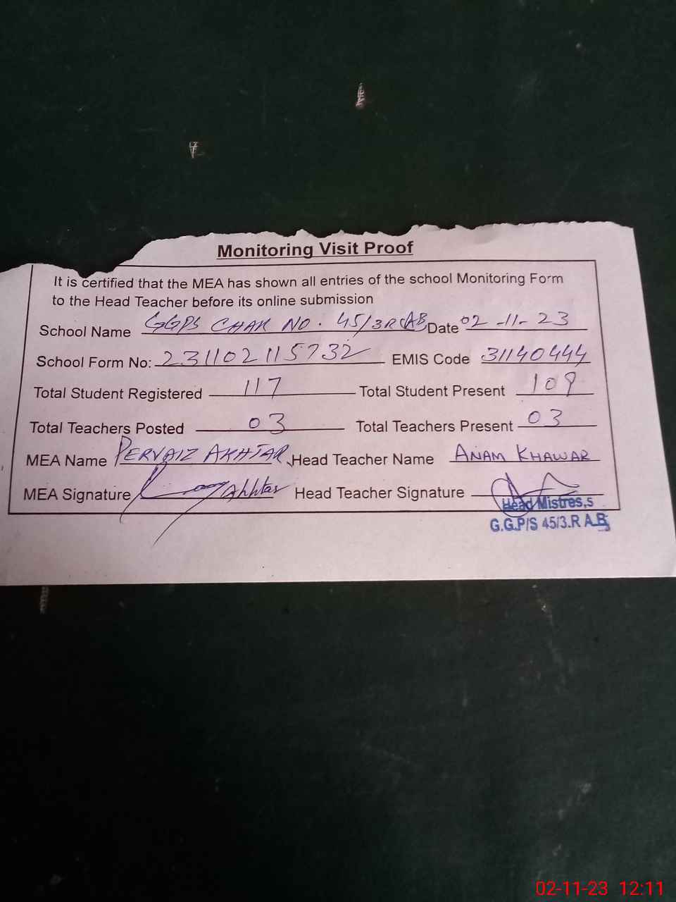 | EMIS Code: 31140444 | Name of School: GGPS CHAK 45/3-R (AB) | |||