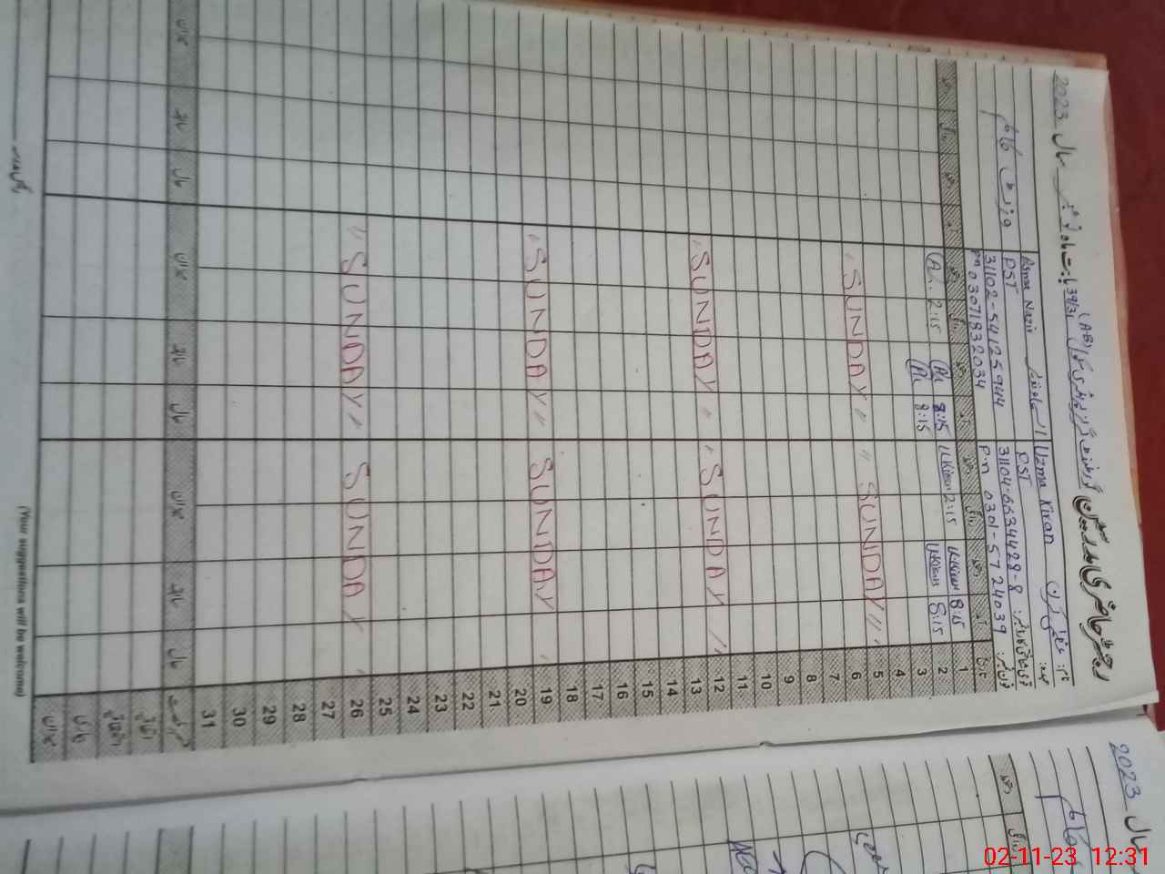 | Name: Uz**** Ki**** Designation: (School Headmaster's/Headmistress's) PST Phone/Cell Number: 03**** |