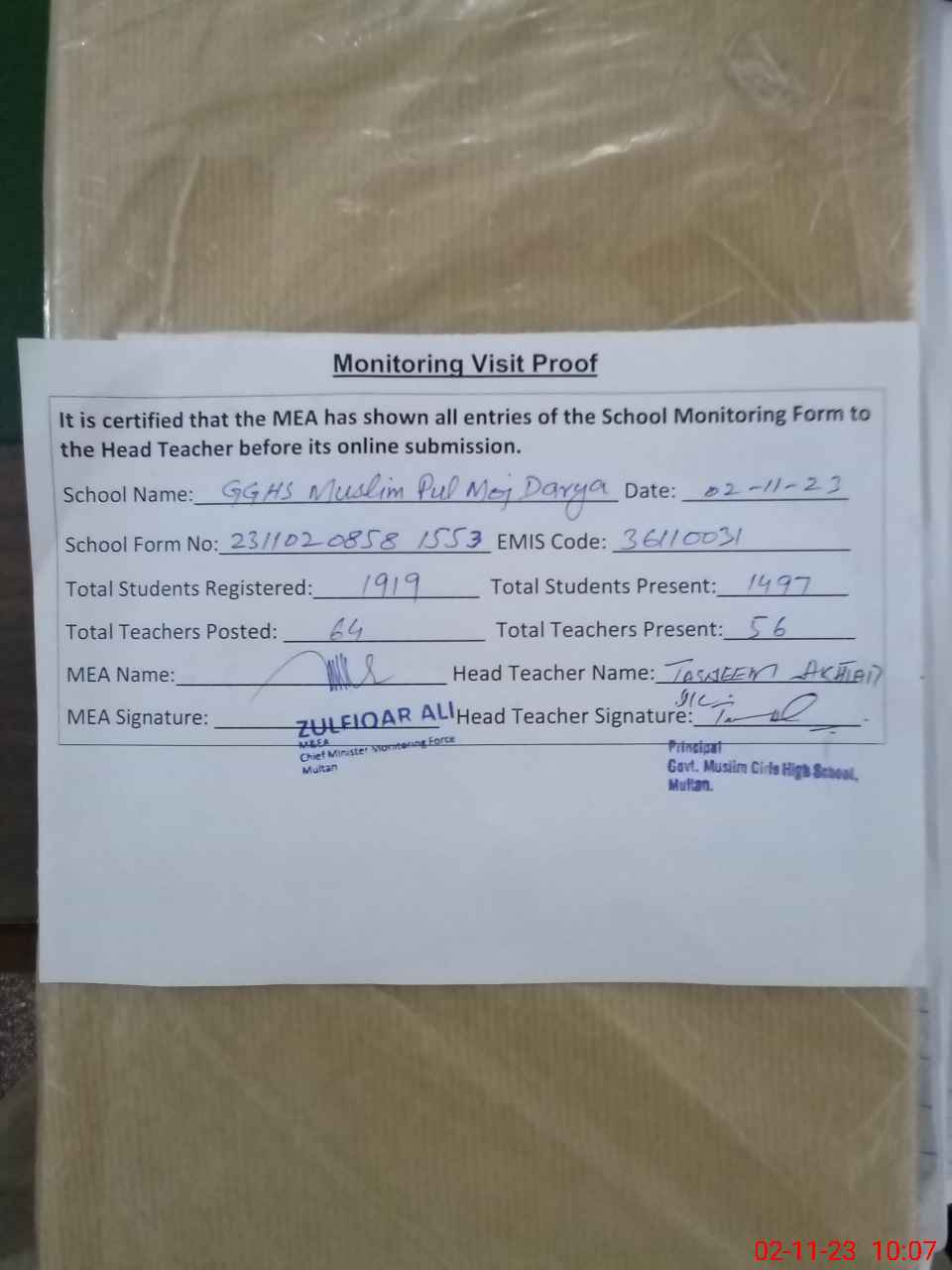 | EMIS Code: 36110031 | Name of School: GGHS MUSLIM PUL MOJ DARYA | |||